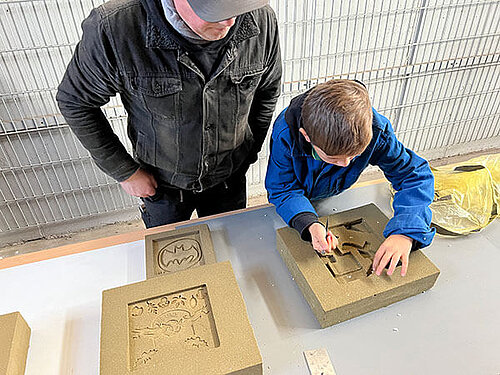 Vom 14. bis 18. Juli sind Sie täglich zwischen 17:00 und 19:00 Uhr eingeladen, selbst kreativ zu werden und eine eigene Form zu gestalten. Gießen sie z.B. ein eigenes Kunstwerk, ein Türschild, eine Hausnummer oder verewigen Sie die Handabrücke Ihrer Kinder in Gusseisen. Für dieses Angebot wird ein Unkostenbeitrag von 20 EUR erhoben.