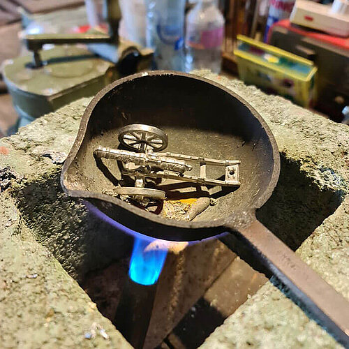 Zum Abschluss des Projektes feiern wir gemeinsam den Museumsaktionstag „Feuer und Flamme“ am 26. Oktober 2024. Bei dieser Gelegenheit haben auch die Besucherinnen und Besucher die Möglichkeit, eigene Formen herzustellen und sie mit Gusseisen zu gießen.